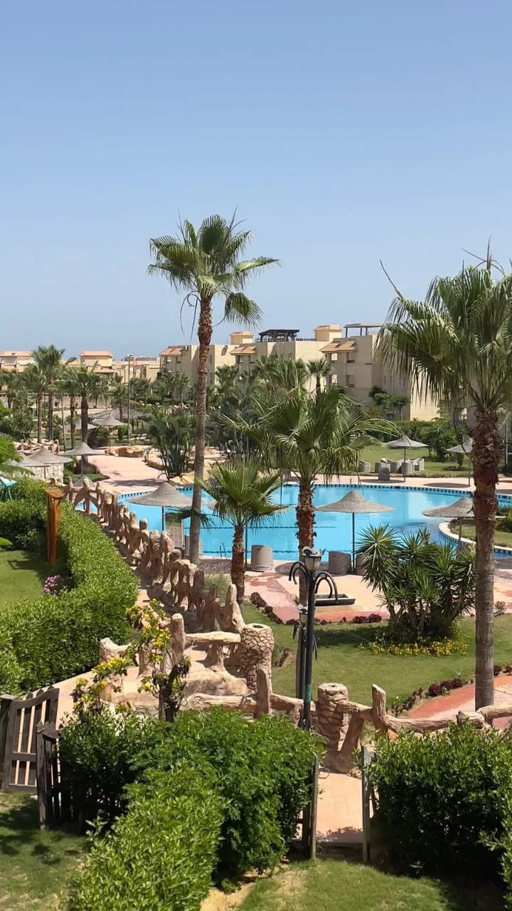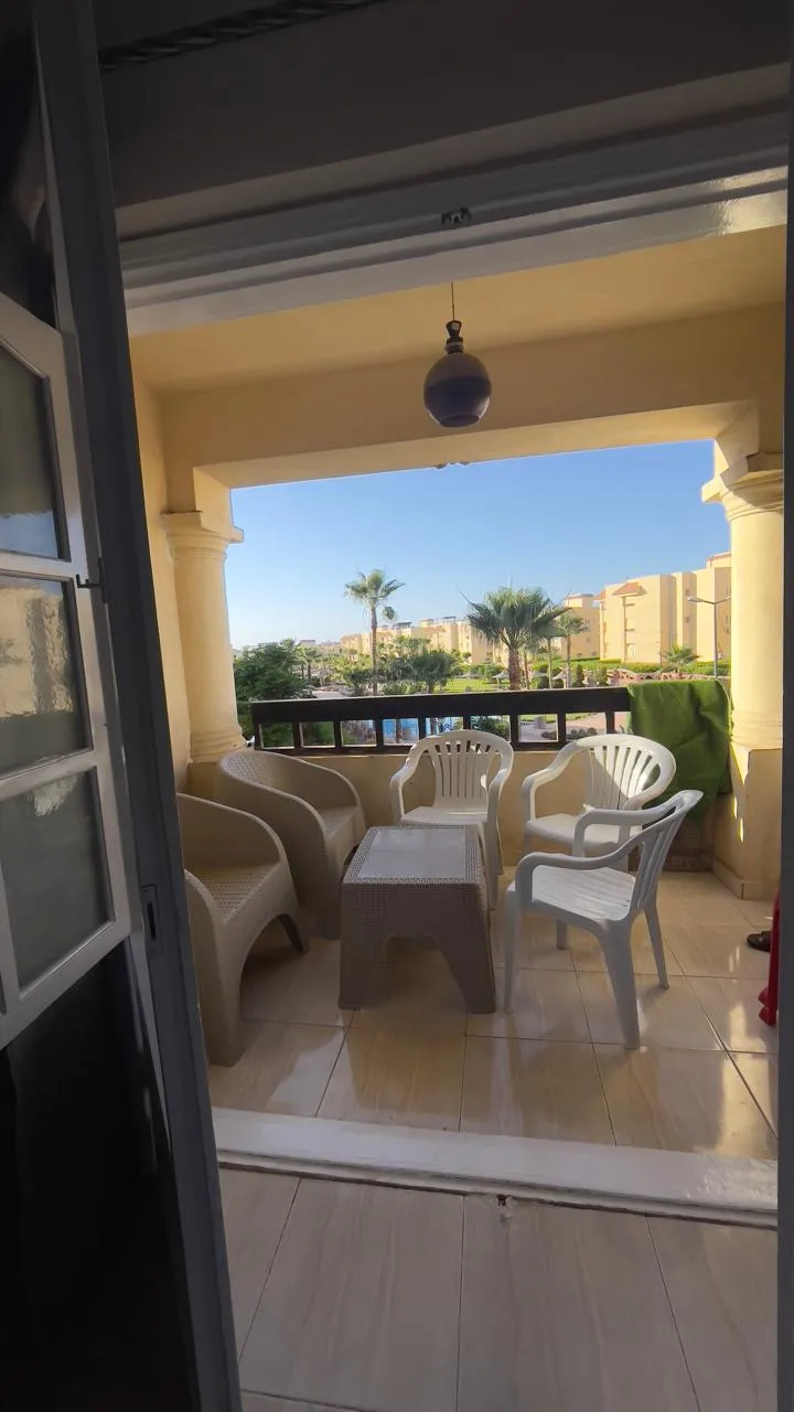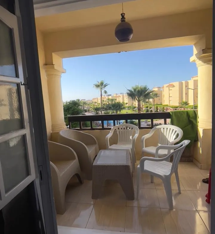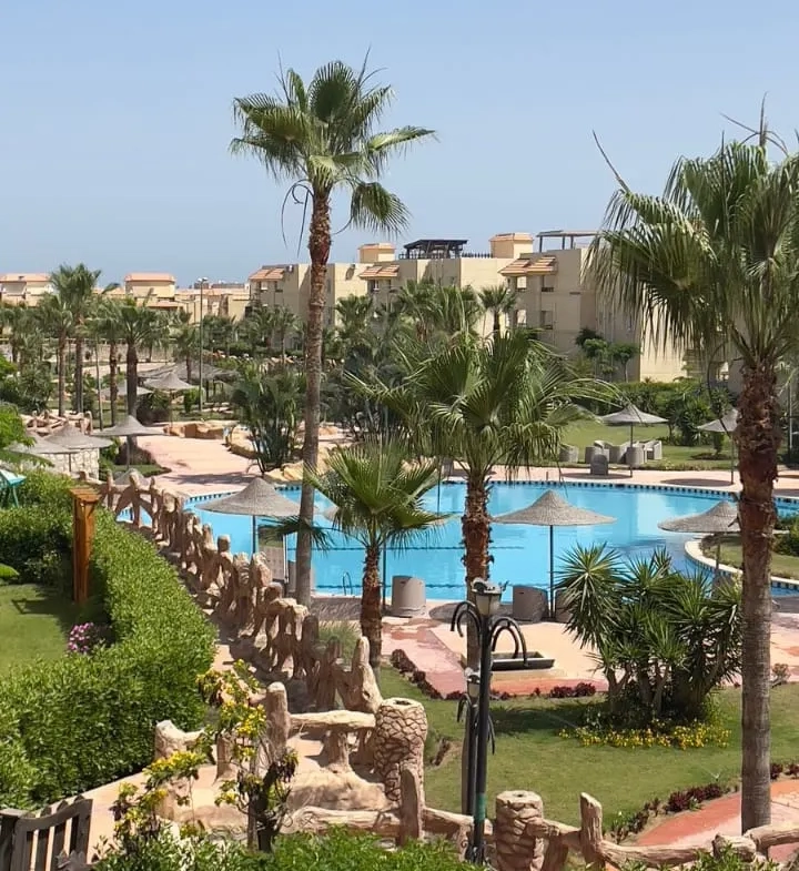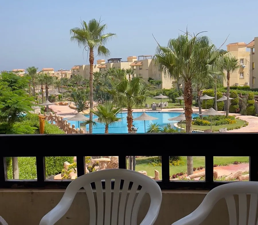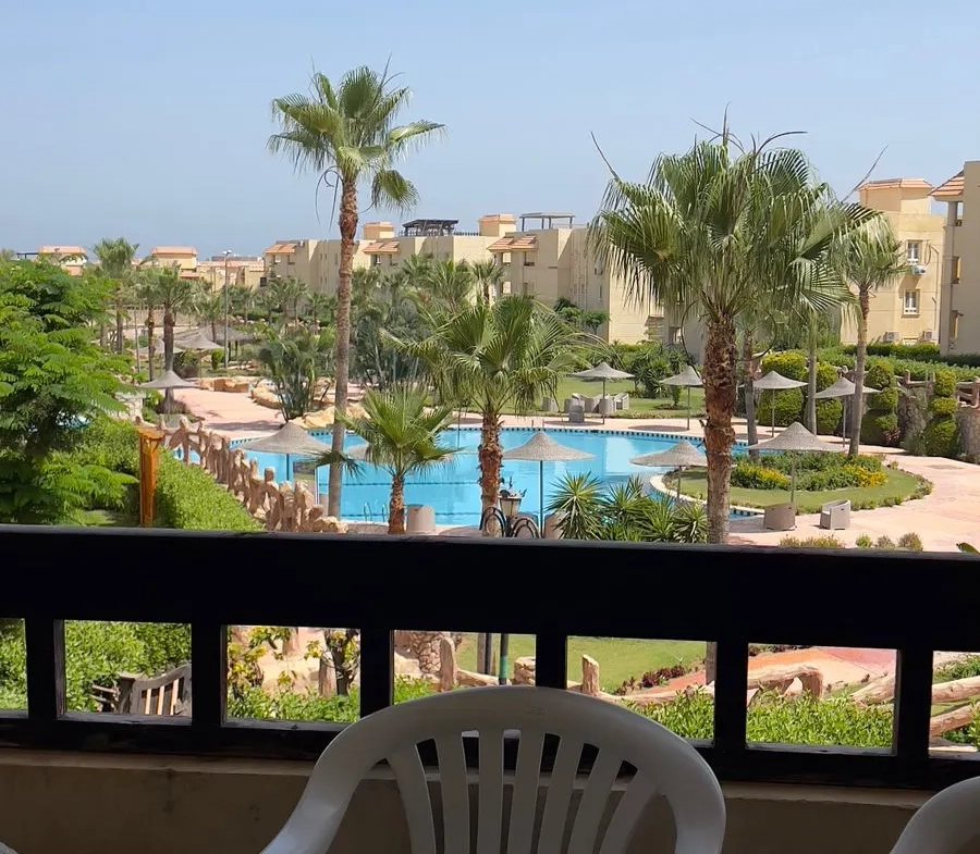 تمتع بفيو رائع على البسين مباشرة مع شاليه غرفتين بالدور الأول بقرية مرسيليا بيتش3